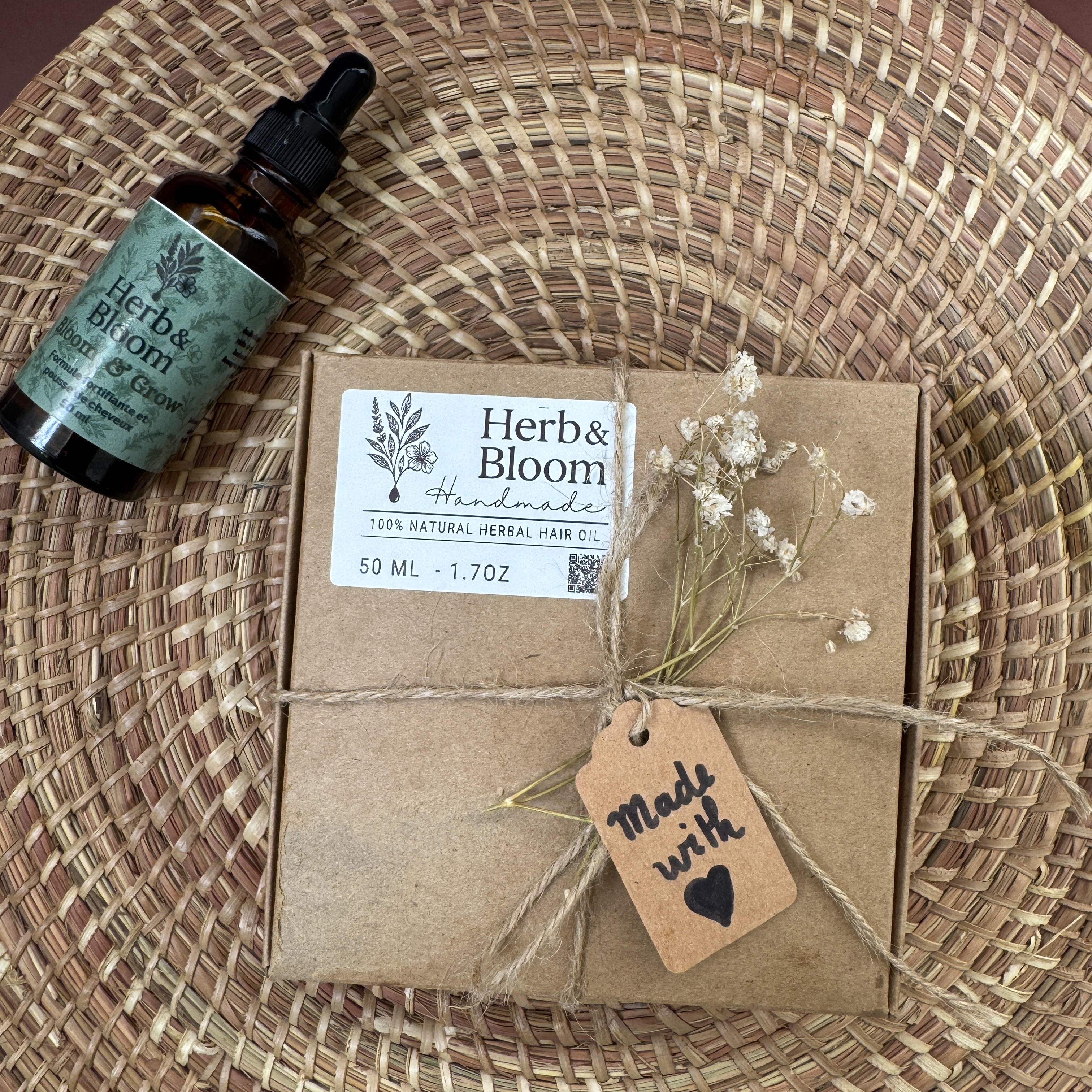 J’adore créer, tester, élaborer des formules de mes propres mains et les voir prendre vie. Herb & Bloom est né de cette passion : un amour pour les cheveux, pour la nature, et pour la création de quelque chose qui aide véritablement à sublimer cette couronne.